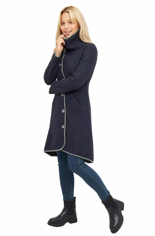 Der ASI-Mantel von APU KUNTUR besteht aus weichem 50% Alpaka-Vlies und 50% Wolle. Er hält Sie stilsicher und zuverlässig bei kalten Temperaturen warm. Dank fein paspelierter Schnitt-Kanten und dekorativen, farbigen Knöpfen wirkt er elegant. Mit seinem ungefütterten, elastischen Material bietet er eine perfekte Passform und einen hohen Tragekomfort. Der Strick ist gewalkt und erhält damit seine angenehme Längs- und Quer-Elastizität.