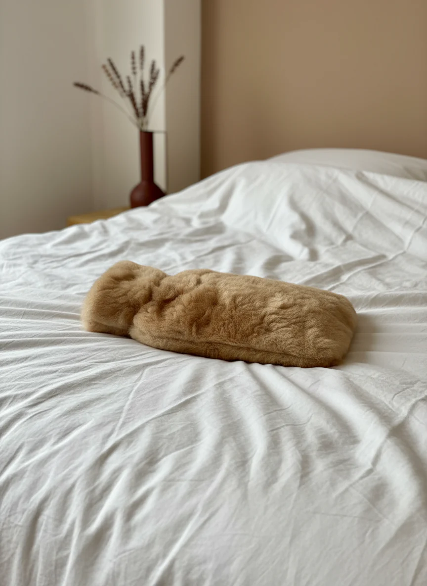Diese Alpaka Wärmflasche hat einen kuschelig superweichen Bezug aus Alpaka Fell (Farbe mittelbraun) und garantiert ein einmaliges haptisches Gefühl.